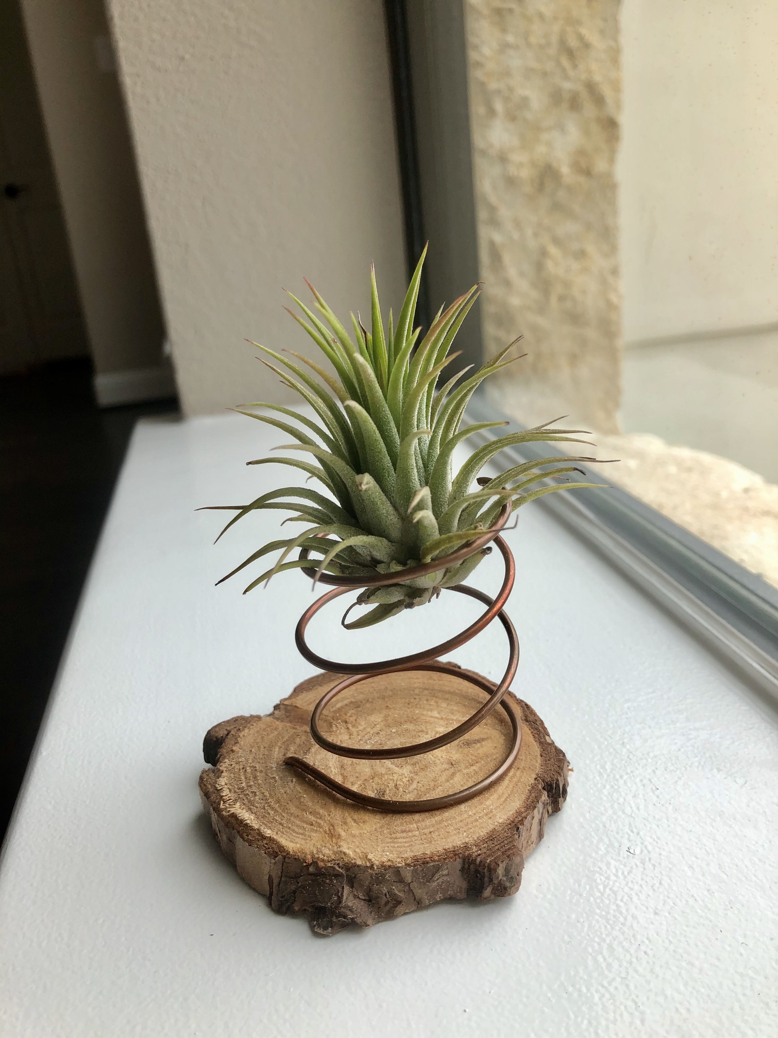 I absolutely love Air Plants! I have quite a few in my urban jungle. These plants are also known by the group to which they belong called Tillandsia. These wonderful little plants come in hundreds of varieties, over 600 varieties! They are epiphytes, which means they do not need soil to survive but rather they cling onto other things, like plants, telephone poles, rocks, buildings, and basically anything else they come across. This makes them the perfect decoration, they can thrive on almost anything and there is no messy soil!